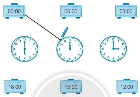 Quan sát đồng hồ rồi nối với thời gian thích hợp.