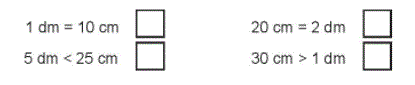 Đúng ghi đ, sai ghi s. cm hay dm? a) Bàn học của em dài 45 ………….. b) Cửa lớp cao khoảng 20 ………… c) Gang tay của em dài khoảng 15 ………… d) Chiều dài bảng lớp đo được 30 …………