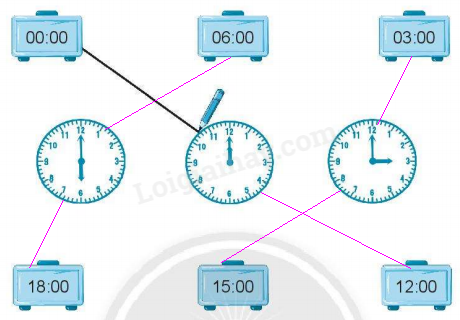 Quan sát đồng hồ rồi nối với thời gian thích hợp.