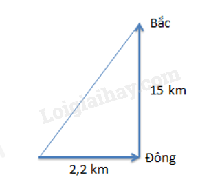 $d = \sqrt {d_1^2 + d_2^2}  = \sqrt {2,{2^2} + {{15}^2}}  = 15,16\left( {km} \right)$