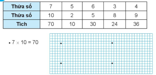 Từ đó em viết các phép nhân thích hợp theo các số trong bảng.