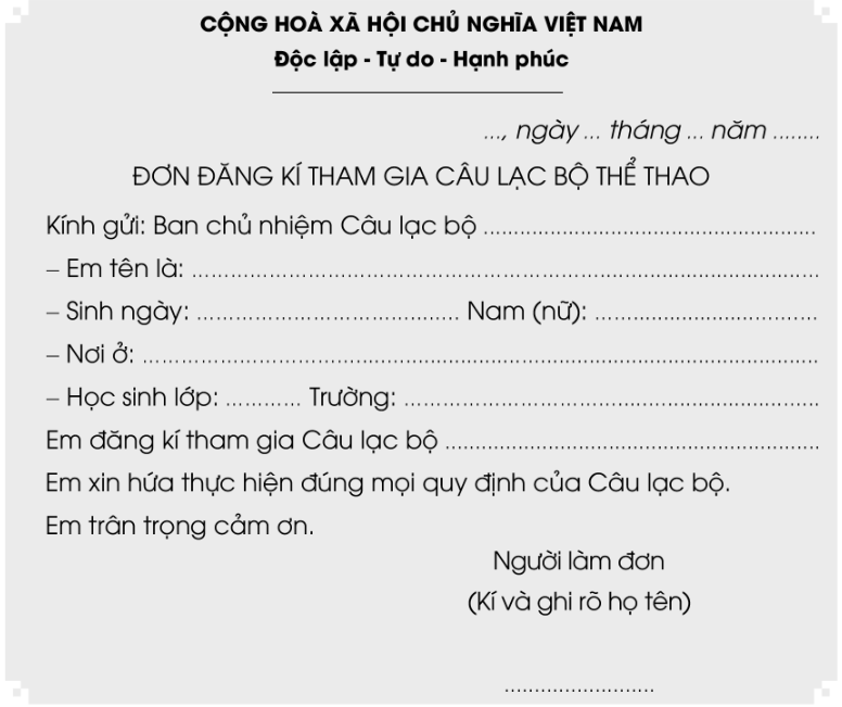 3. Bài viết 2: Làm đơn tham gia câu lạc bộ thể thao