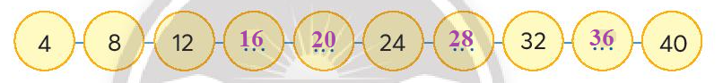 Đếm thêm 4 đơn vị rồi viết số còn thiếu vào chỗ trống.