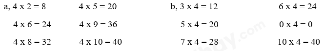 Tính nhẩm kết quả các phép tính dựa vào bảng nhân  4.