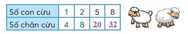 Mỗi con cừu có 4 chân. Vậy số chân cừu bằng số con cừu nhân với 4.