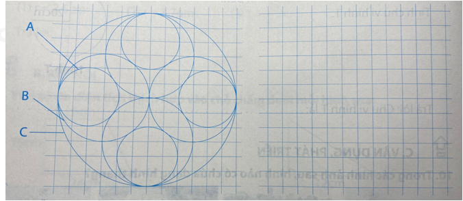 b) Coi mỗi ô vuông có cạnh 1 cm. Tính chu vi các hình tròn A, B, C.