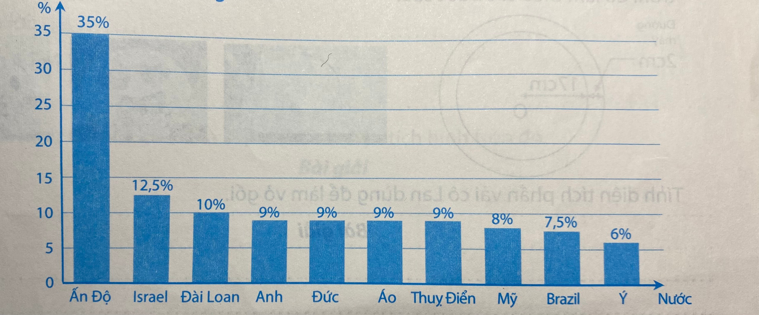 Sau đây là biểu đồ thể hiện phần trăm số người ăn chay so với tổng dân số ở một số quốc gia trên thế giới.