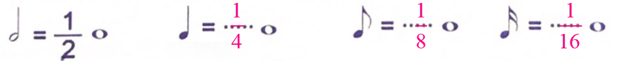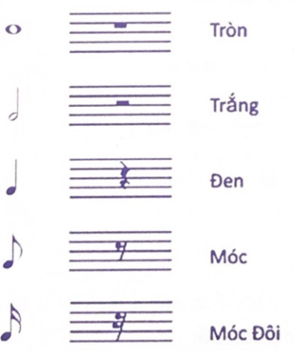 Nốt tròn = 4 đơn vị đo độ dài (đv) thì các nốt còn lại sẽ có giá trị như sau: