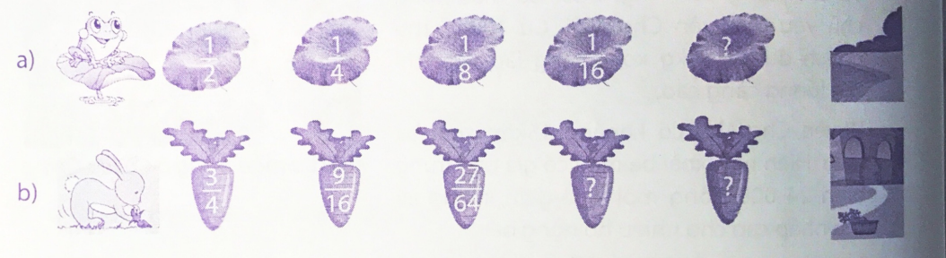 a) Phân số đằng sau = Phân số đằng trước x $\frac{1}{2}$