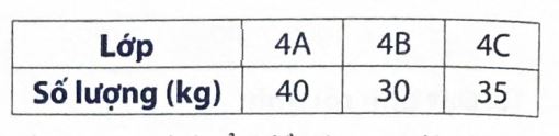 Khối lớp Bốn của một trường tiểu học tham gia thu gom giấy làm kế hoạch nhỏ, kết quả được thể hiện trong bảng bên.