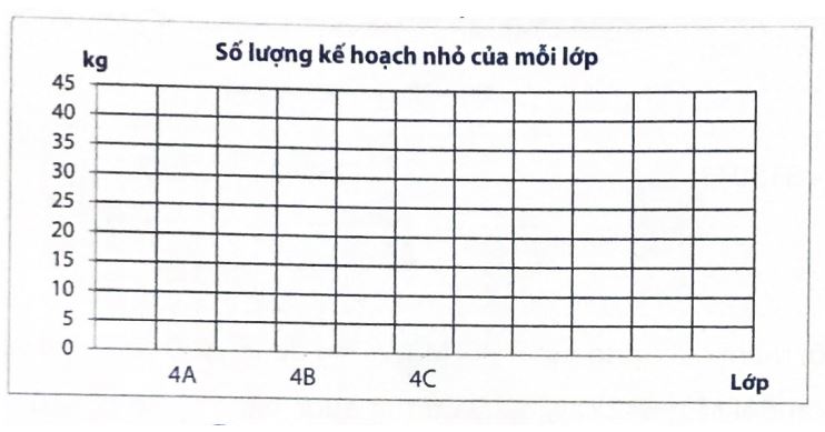 Khối lớp Bốn của một trường tiểu học tham gia thu gom giấy làm kế hoạch nhỏ, kết quả được thể hiện trong bảng bên. Sử dụng thông tin trong bảng trên, em hãy hoàn thành biểu đồ cột sau đây: