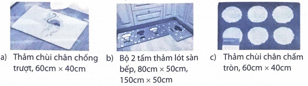 b) Diện tích bộ 2 tấm thảm lót sàn bếp là: