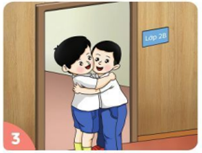 Biểu hiện: hai bạn nam ôm lấy nhau, gương mặt đều nở nụ cười rất tươi.