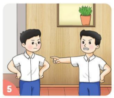Hai bạn nam đang bộc lộ sự khó chịu, tức giận với nhau.