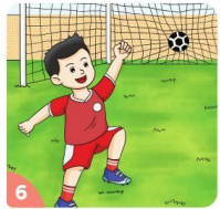 Bạn nam đang bày tỏ cảm xúc vui mừng khi sút được bóng vào khung thành.