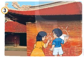 Hai bạn nhỏ đang vẽ bậy lên tường. Đây là việc làm không nên vì sẽ gây hư hỏng cơ sở vật chất, mất mĩ quan. Đây không phải là việc làm thể hiện tình yêu quê hương.