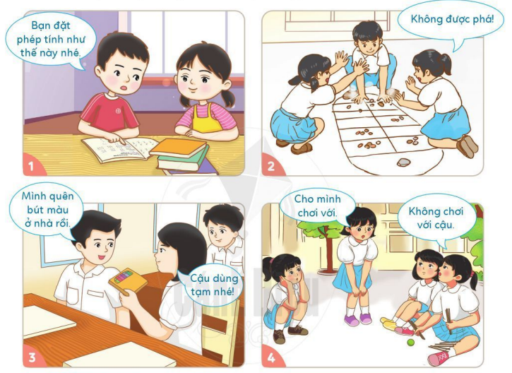 Em có nhận xét gì về việc làm của các bạn trong mỗi tranh dưới đây?