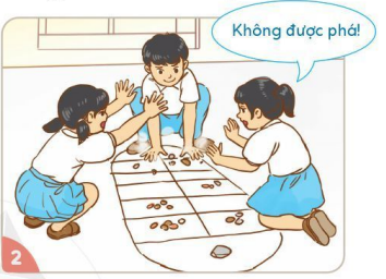 Hai bạn nữ đang chơi ô ăn quan, bạn nam đã vào phá đám. Đây là việc làm sai vì bạn nam đã thiếu tôn trọng bạn bè. Em không đồng tình với việc làm của bạn nam.