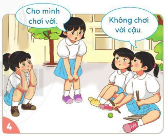 Bạn nữ muốn vào chơi chuyền cùng các bạn nhưng các bạn không cho. Một bạn trong nhóm đã nói: “Không chơi với cậu”. Đây là việc làm sai vì có sự phân biệt đối xử với bạn bè. Em không đồng tình với việc làm của bạn nữ ấy.