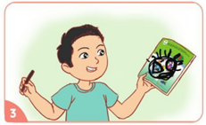 Bạn nam đã vẽ bậy ra bìa cuốn sách. Đây là việc làm không tốt cho đồ dùng cá nhân vì sẽ khiến cuốn sách bị bẩn, xấu, nhanh cũ. Chúng ta không đồng tình với việc làm này.