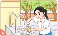 Bạn nữ đang rửa bình nước cá nhân. Đây là việc làm bảo quản, giữ gìn đồ dùng cá nhân, giúp cho bình nước sạch sẽ, vệ sinh, bảo vệ chính sức khỏe của bạn. Chúng ta đồng tình với việc làm này.