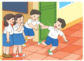 Tình huống 1: Trong giờ ra chơi, vì muốn chạy thật nhanh ra sân chơi, Huy đã đẩy Hùng làm bạn ngã, khiến Hùng tức giận.