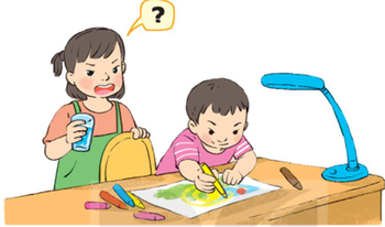 3. Em dành cả buổi chiều để vẽ một bức tranh. Sau đó, em trai dùng bút gạch lên bức tranh khiến em rất tức giận.