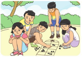 Hoa chơi ô ăn quan cùng các bạn. Chờ mãi chưa đến lượt nên Hoa giận dỗi, không chơi cùng các bạn nữa.