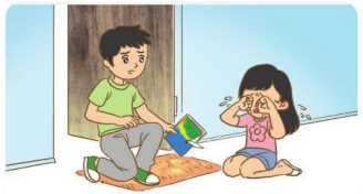 Vân vừa được tặng cuốn truyện rất đẹp. Anh trai Vân mượn đọc và vô tình làm rách trang bìa. Vân rất tức giận, khóc ầm lên và bắt đền anh.