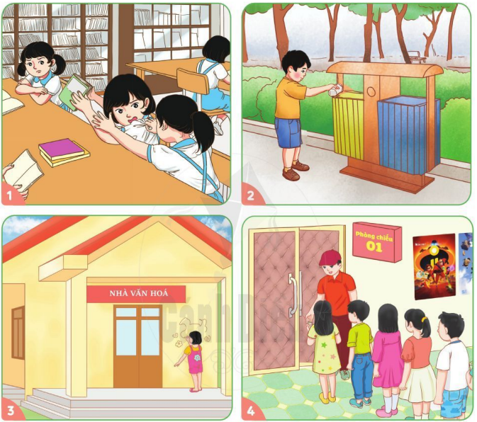 Đề bài: Em có nhận xét gì về việc làm của bạn trong mỗi tranh dưới đây?