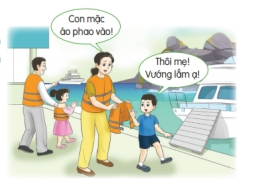 Tin không chịu mặc áo phao khi đi tàu dù mẹ đã nhắc nhở. Đây là hành động không tuân thủ quy định nơi công cộng. Nếu em là Tin, em sẽ nghe lời mẹ và quy định của bến tàu.
