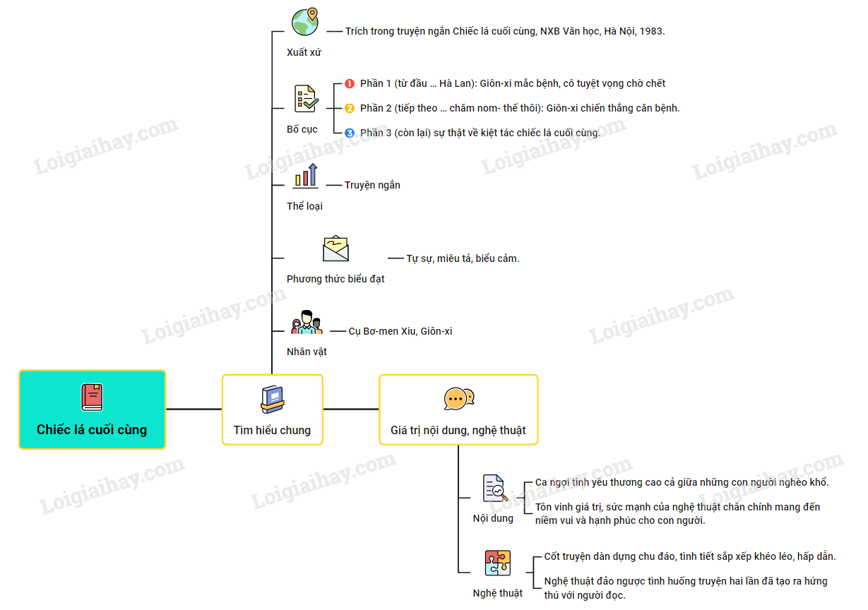 Sơ đồ tư duy đoạn trích “Chiếc lá cuối cùng”: