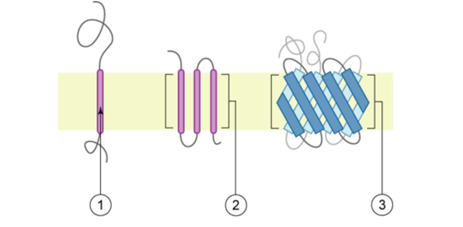 2) protein chứa chuỗi xoắn α xuyên màng nhiều lần.