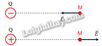 – Cường độ điện trường do điện tích điểm Q gây ra tại một điểm M cách điện tích một đoạn r trong chân không có phương nằm trên đường thẳng nối điện tích và điểm M, có chiều hướng ra ca điện tích nếu Q>0 và hướng lại gần điện tích nếu Q<0, có độ lớn là: