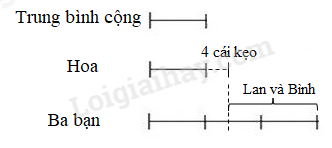 Ví dụ 2: Lan có 30 viên kẹo, Bình có 12 viên kẹo. Hoa có số viên kẹo lớn hơn trung bình cộng của cả ba bạn là 4 viên. Hỏi Hoa có bao nhiêu viên kẹo?