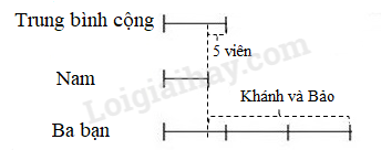 Ví dụ 3: Khánh có 20 viên bi, Bảo có 31 viên bi. Nam có số bi ít hơn trung bình cộng của cả ba bạn là 5 viên bi. Hỏi Nam có bao nhiêu viên bi?