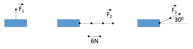 Lực \(F_3\) tác dụng lên vật C : phương hợp với đường nằm ngang 1 góc 300 chếch sang phải, chiều từ dưới lên, độ lớn 12N.