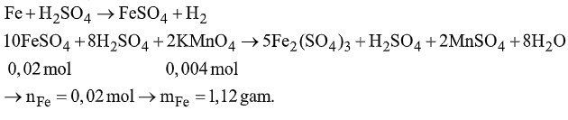 Câu 10. Hòa tan một hợp kim Fe – Cu nặng 2,0 gam bằng dung dịch \({H_2}S{O_4}\) loãng dư, loại bỏ kết tủa được dung dịch A. Dung dịch A làm mất màu vừa hết 40 ml dung dịch \(KMn{O_4}\) 0,1M. Hàm lượng sắt nguyên chất trong hợp kim là