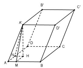 Kẻ \(A’H \bot \left( {ABCD} \right);HM \bot AB;HN \bot AD\)