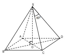 Câu 10: Cho hình chóp tứ giác đều \(S.ABCD\) có chiều cao h, góc ở đỉnh của mặt bên bằng \({60^0}\). Thể tích hình chóp là: