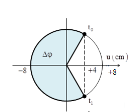 \(\Delta t = 1{\rm{s}} = \frac{T}{6} + \frac{{3T}}{4} = \frac{{11T}}{{12}} \to T = \frac{{12}}{{11}}{\rm{s}} \to \omega  = \frac{{2\pi }}{T} = \frac{{11\pi }}{6}ra{\rm{d}}/s\)