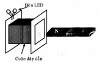 Khi đưa thanh nam châm từ ngoài vào trong cuộn dây và từ trong ra ngoài cuộn dây thì 2 đèn led sáng
