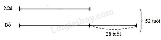 Câu 3. Trung bình cộng số tuổi của hai bố con Mai là 26 tuổi. Tính tuổi của mỗi người, biết bố hơn Mai 28 tuổi.