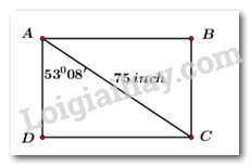 1. Áp dụng các công thức liên hệ giữa cạnh và góc trong tam giác vuông để tính các cạnh của tivi sau đó đổi đơn vị từ inch sang cm.