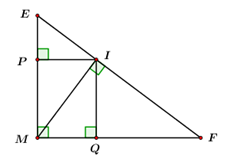 Theo đề bài ta có: \(\left\{ \begin{array}{l}IP \bot ME\, = \left\{ P \right\}\\IQ \bot MF\, = \left\{ Q \right\}\end{array} \right.\)