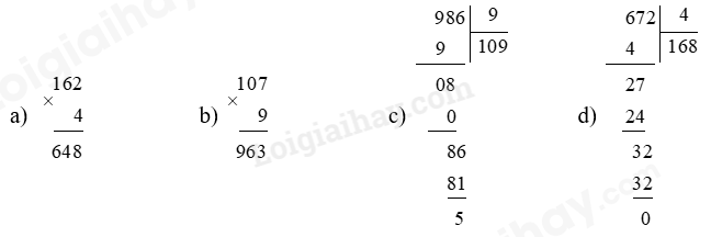 – Nhân thừa số thứ hai với từng chữ số của thừa số thứ nhất lần lượt từ phải sang trái.