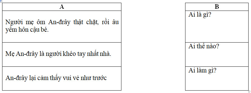 – Ai là gì?    : Người mẹ ôm An-đrây thật chặt, rồi âu yếm hôn cậu bé.