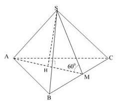 Câu 36. Cho khối chóp \(S.ABC\) có đáy \(ABC\) là tam giác đều cạnh \(a\)¸\(M\) là trung điểm của \(BC\), hình chiếu vuông góc của \(S\) trên mặt phẳng\(\left( {ABC} \right)\) trùng với trung điểm \(H\) của đoạn thẳng \(AM\), góc giữa mặt phẳng \(\left( {SBC} \right)\) và mặt phẳng \(\left( {ABC} \right)\) bằng \({60^o}\). Thể tích của khối chóp \(S.ABC\) bằng