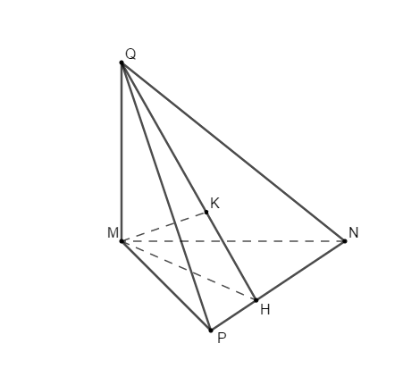 Mà \(MQ \bot \left( {MNP} \right) \Rightarrow MQ \bot NP;MH \bot NP \Rightarrow \) từ M kẻ \(MK \bot QH \Rightarrow {d_{\left( {M;\left( {NQP} \right)} \right)}} = MK\)