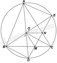 Cho đường tròn \(\left( {O;R} \right)\) và dây cung \(BC\) cố định, \(A\) là điểm di động trên cung \(BC\) sao cho tam giác \(ABC\)nhọn. Hai đường phân giác trong của góc \(A\) và \(B\) cắt nhau ở \(I\)và thứ tự cắt đường tròn ở \(D,E\). Đường thẳng \(DE\) cắt \(BC,AC\) ở \(M,N\).